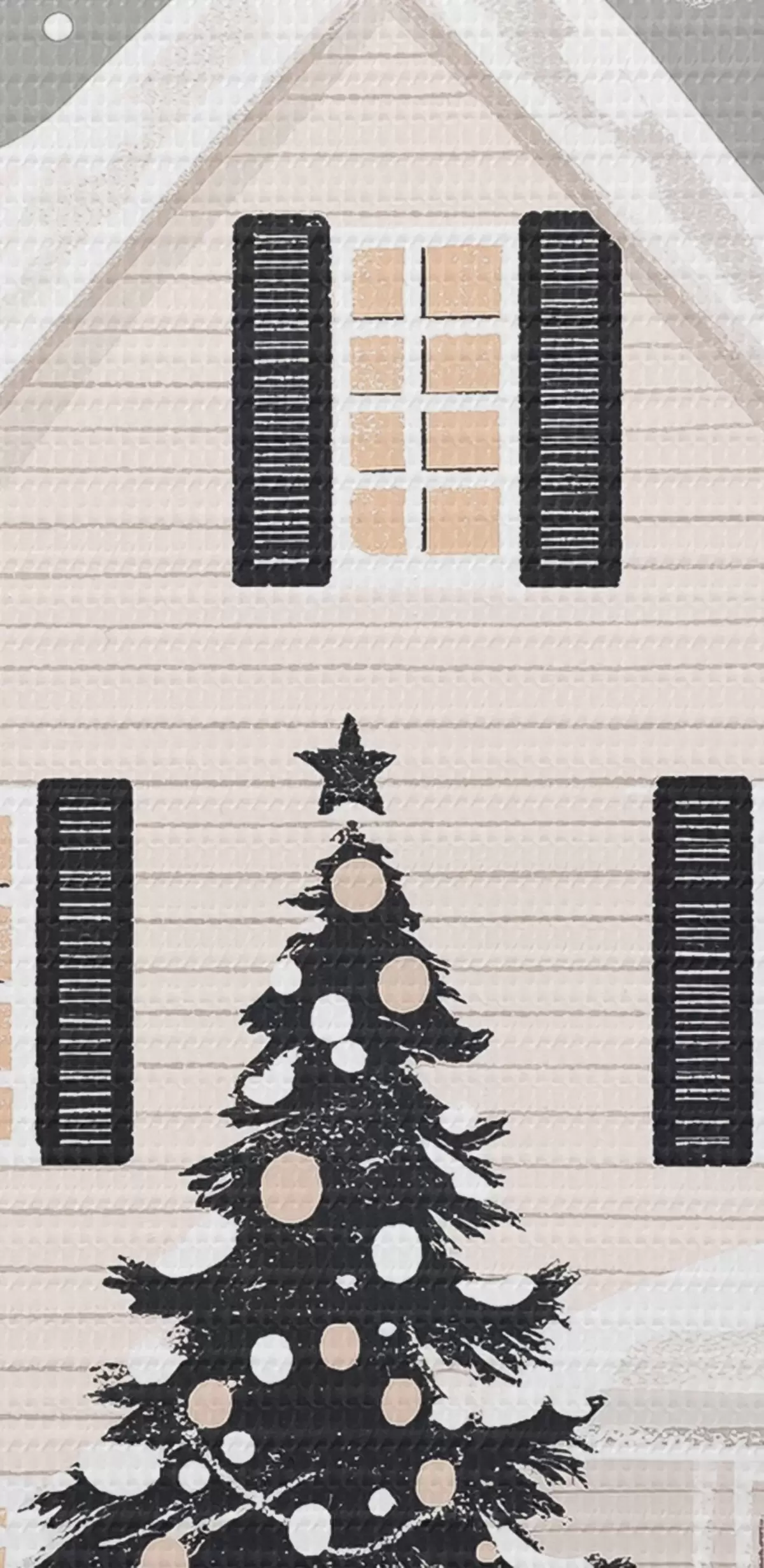 Wandbilder Winterstadt, geschmückter Tannenbaum, Weihnachten, Wald, schönes Haus Art. s41371