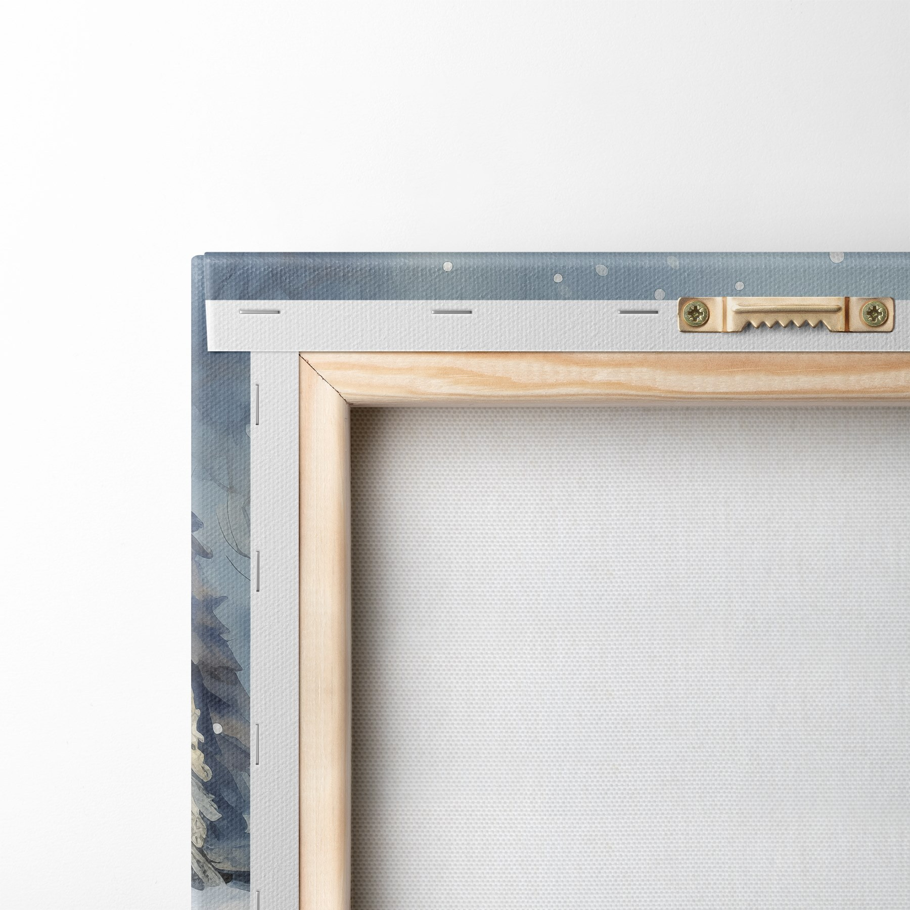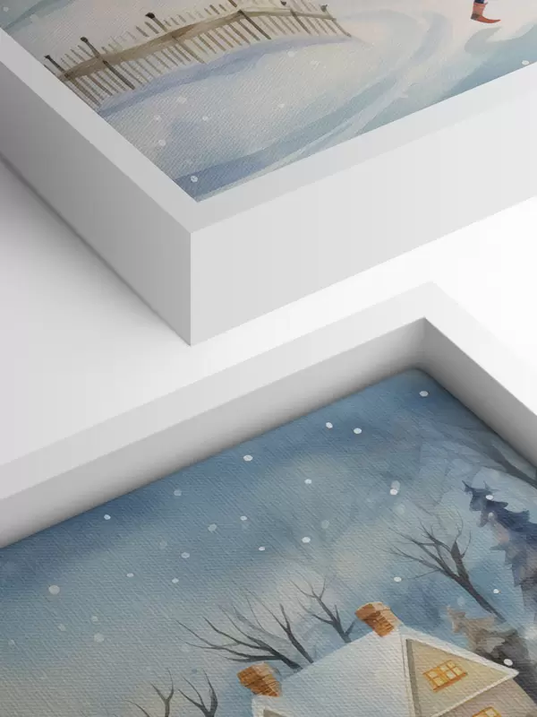 Wandbilder Mädchen im Winterdorf, Schneeflocken, Aquarell, Häuser, Wald s41385