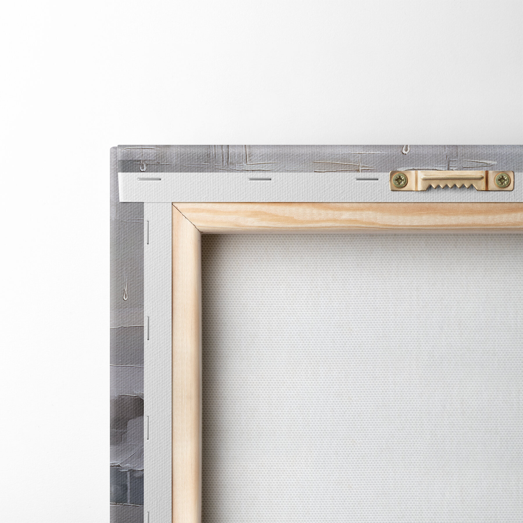 Sie können das Bild an Schrauben aufhängen. Dazu legen wir unseren Bildern Halterungen bei, mit denen Sie das Bild bequem aufhängen können.
