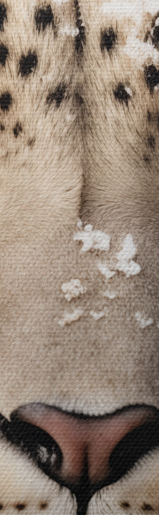 Wandbilder Porträt eines Leoparden unter fallendem Schnee Art. s41434