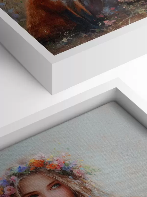Drei Materialtypen stehen zur Verfügung: Economic Canvas - ein dichtes und haltbares Material für den Digitaldruck, identisch mit Malerleinwand, wasserfeste Oberfläche, realistische Wiedergabe von Details, mittelkörniges Material. Premium Canvas - die Textur ähnelt der einer Malerleinwand (verwobene kleine Fäden). Weiche, detaillierte Wiedergabe des Bildes auf einer matten Oberfläche. Eco-Premium - hochwertiges Gewebe aus 100% Baumwolle. Dank der natürlichen Baumwollfasern ist das Material langlebig und verschleißfest. Hervorragende Farbwiedergabe und Detailtreue.