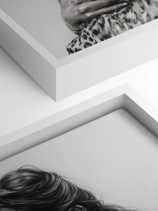 Wandbilder Frau mit Leopard, wilde Tiere, Bleistiftzeichnung, schwarz-weiß Art. s41455