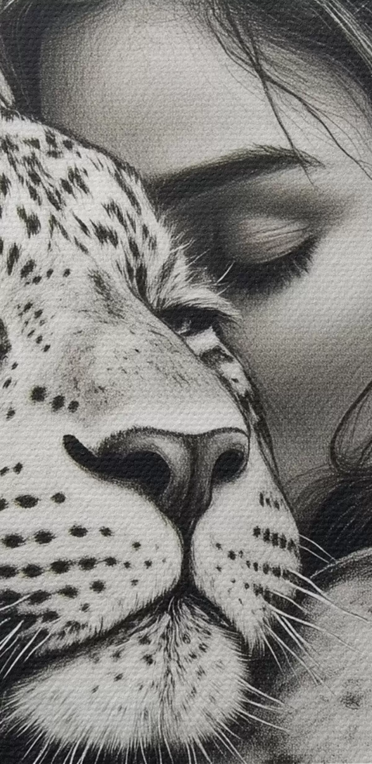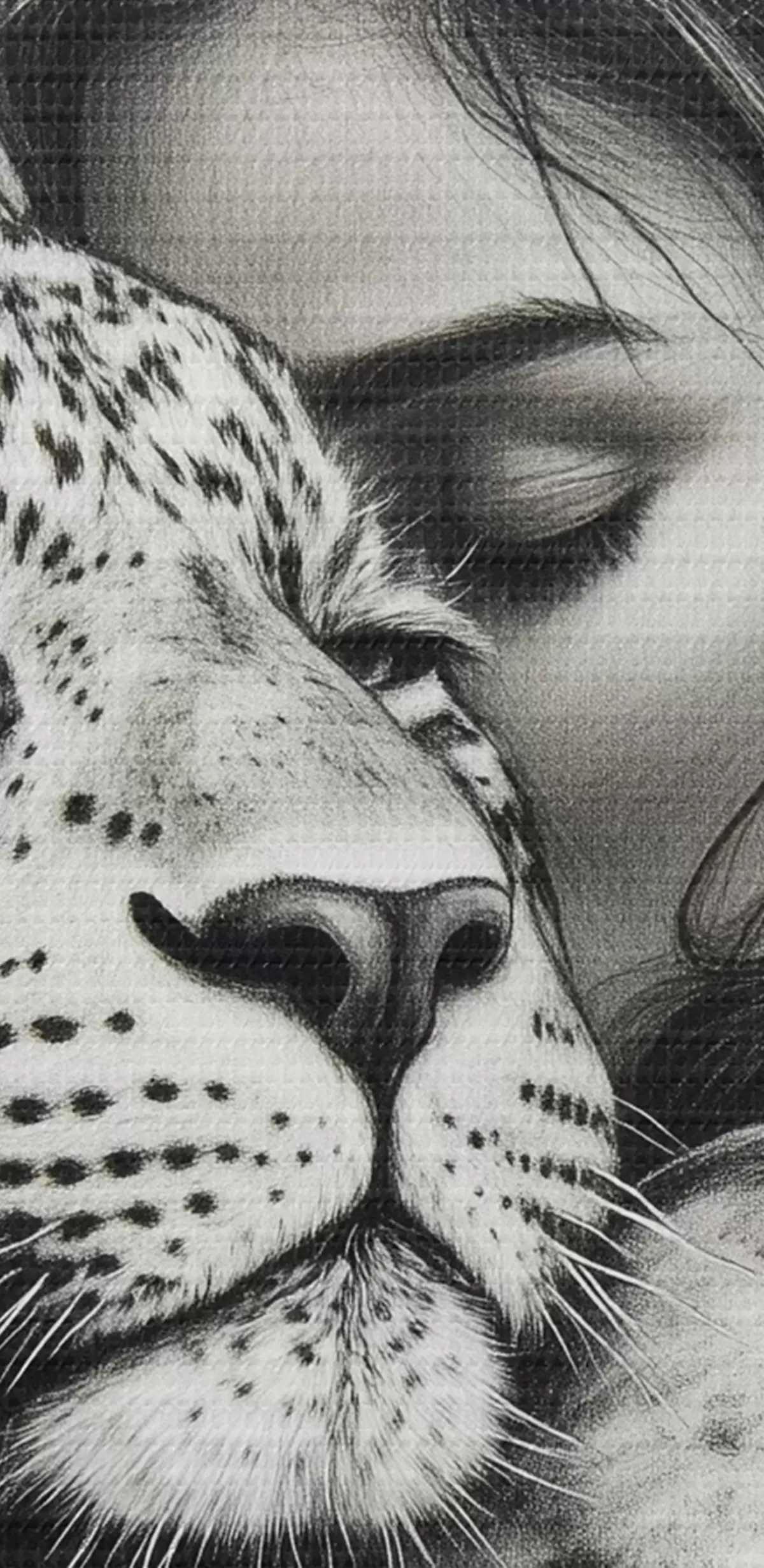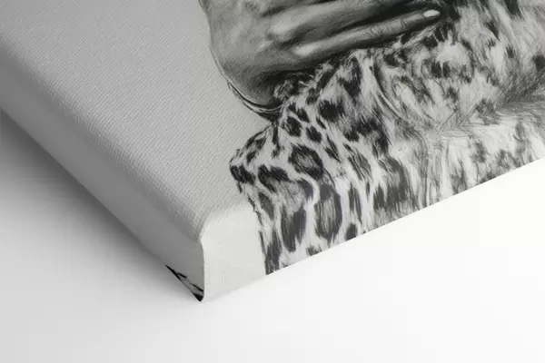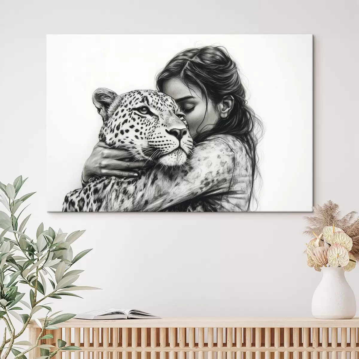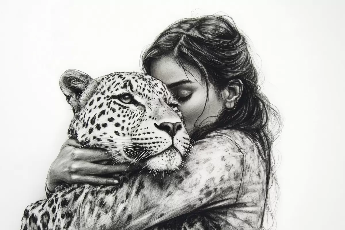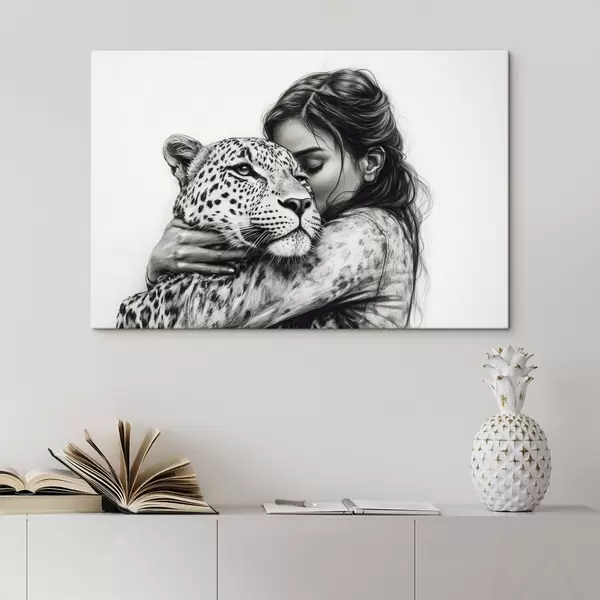 Wandbilder Frau mit Leopard, wilde Tiere, Bleistiftzeichnung, schwarz-weiß Art. s41455