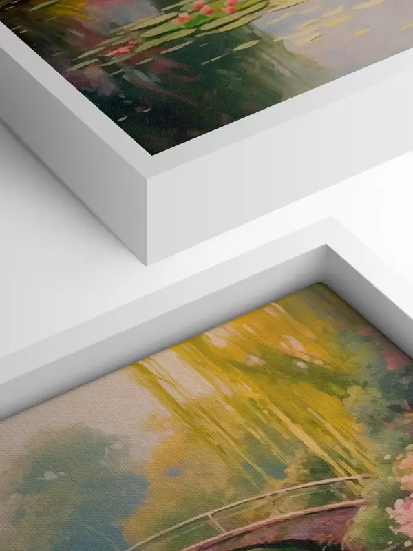 Wandbilder Gartenbrücke über den See mit Seerosen Art. s41503