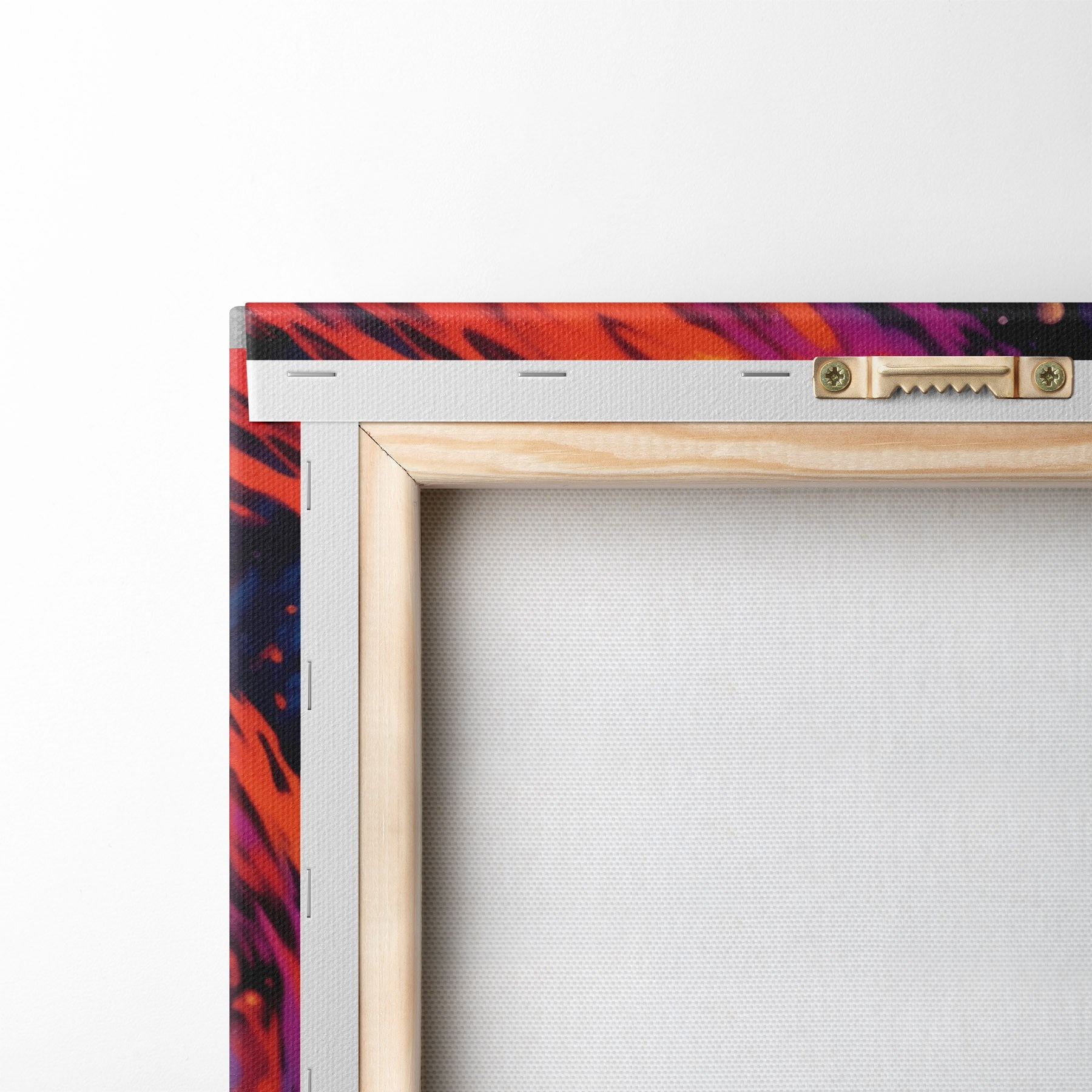 Um die Leinwand auf Keilrahmen zu spannen, ohne das Bild zu beschädigen, verwenden wir ein gespiegeltes Bild.