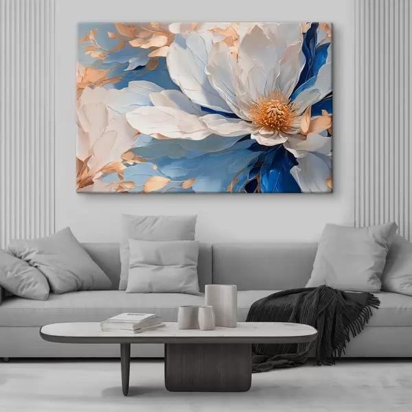 Wandbilder Nahaufnahme einer Blume mit weißen und blauen Blütenblättern Art. s41512