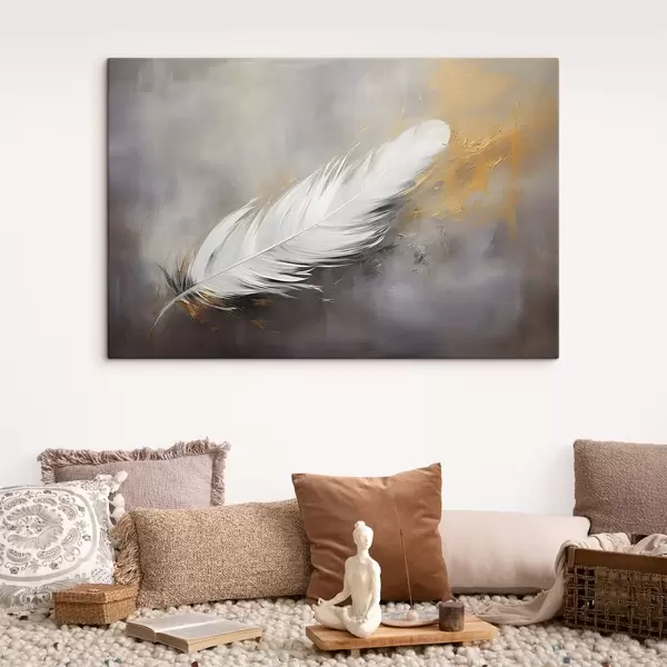 Wandbilder Weiße Feder auf grauem Hintergrund Art. s41557