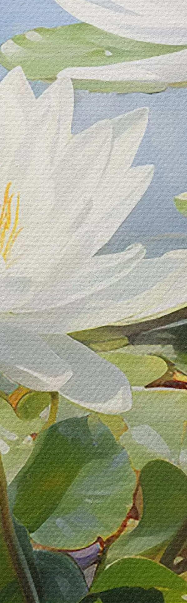 Drei Materialtypen stehen zur Verfügung: Economic Canvas - ein dichtes und haltbares Material für den Digitaldruck, identisch mit Malerleinwand, wasserfeste Oberfläche, realistische Wiedergabe von Details, mittelkörniges Material. Premium Canvas - die Textur ähnelt der einer Malerleinwand (verwobene kleine Fäden). Weiche, detaillierte Wiedergabe des Bildes auf einer matten Oberfläche. Eco-Premium - hochwertiges Gewebe aus 100% Baumwolle. Dank der natürlichen Baumwollfasern ist das Material langlebig und verschleißfest. Hervorragende Farbwiedergabe und Detailtreue.