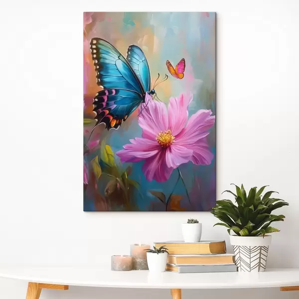 Wandbilder schmetterling und große rosa Blume Art. s41620