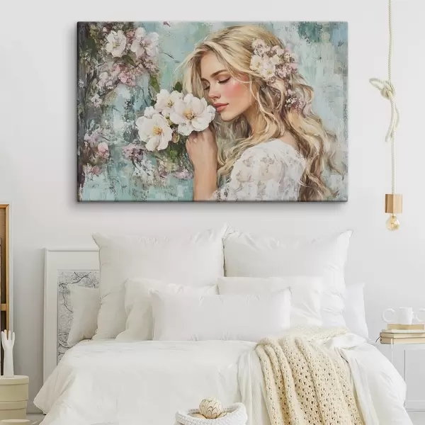 Wandbilder mädchen bei Blumen mit Ölfarben Art. s41632
