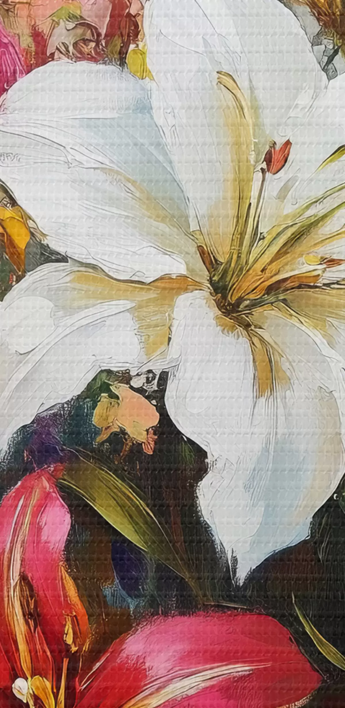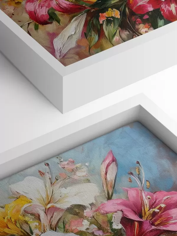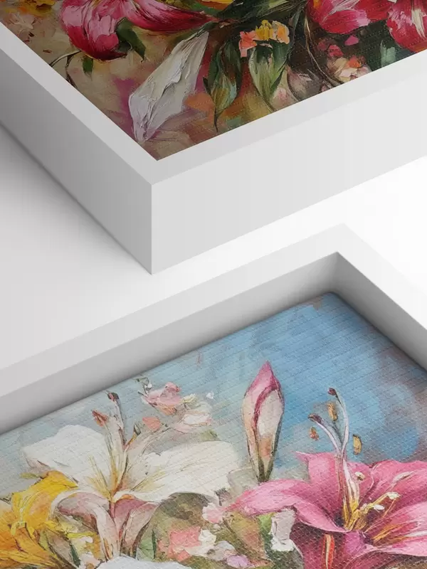 Drei Materialtypen stehen zur Verfügung: Economic Canvas - ein dichtes und haltbares Material für den Digitaldruck, identisch mit Malerleinwand, wasserfeste Oberfläche, realistische Wiedergabe von Details, mittelkörniges Material. Premium Canvas - die Textur ähnelt der einer Malerleinwand (verwobene kleine Fäden). Weiche, detaillierte Wiedergabe des Bildes auf einer matten Oberfläche. Eco-Premium - hochwertiges Gewebe aus 100% Baumwolle. Dank der natürlichen Baumwollfasern ist das Material langlebig und verschleißfest. Hervorragende Farbwiedergabe und Detailtreue.