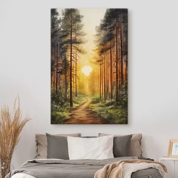 Wandbilder Sonnenuntergang im Kiefernwald, Aquarell, Naturschönheit Art. s41638