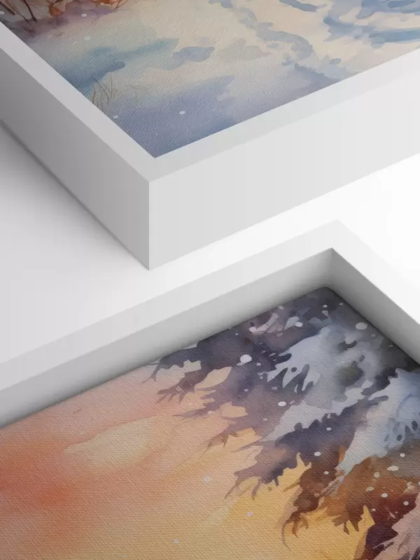Wandbilder Aquarell Winterwald, Schneeflocken, schöner Himmel, Sonnenuntergang Art. s41640