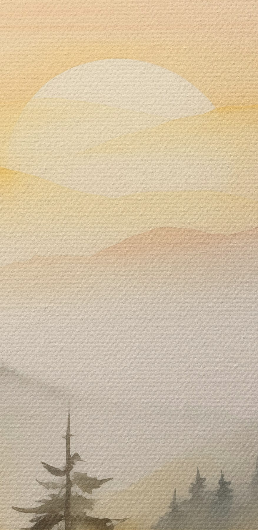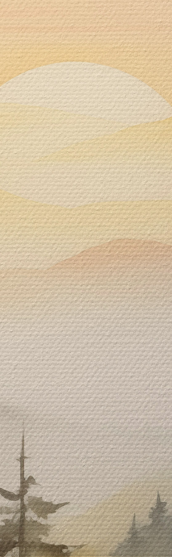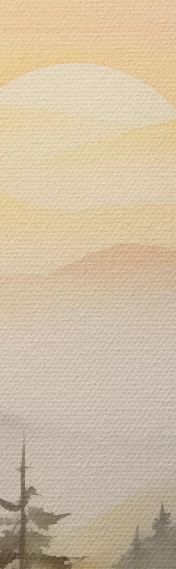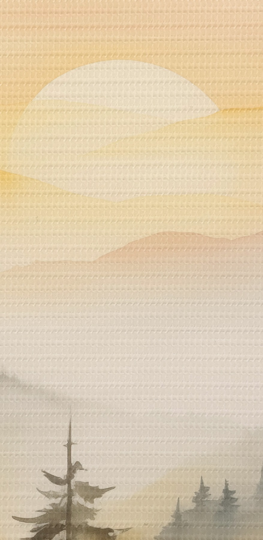 Wandbilder Herbst Berge Landschaft, Kiefernwald, Sonnenuntergang, Aquarell s41645