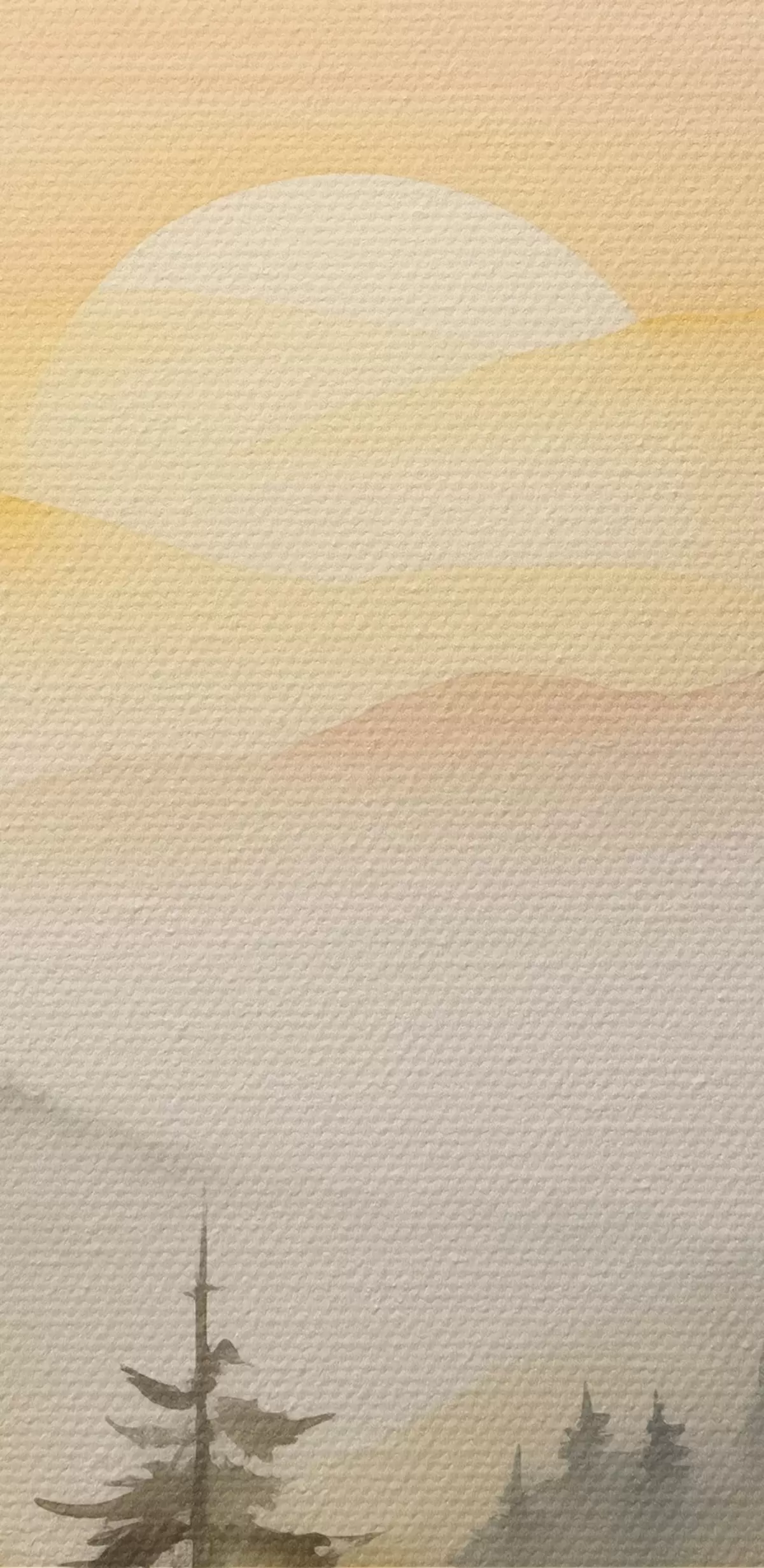 Wandbilder Herbst Berge Landschaft, Kiefernwald, Sonnenuntergang, Aquarell Art. s41645