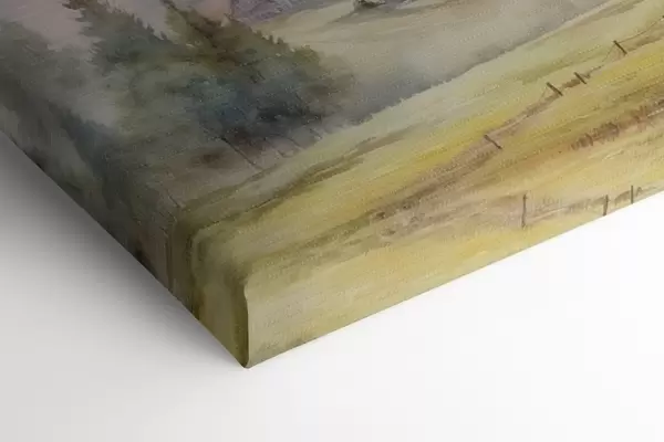 Wandbilder Schöne Berge, neblige Waldlandschaften, Aquarell, Dorf Art. s41649