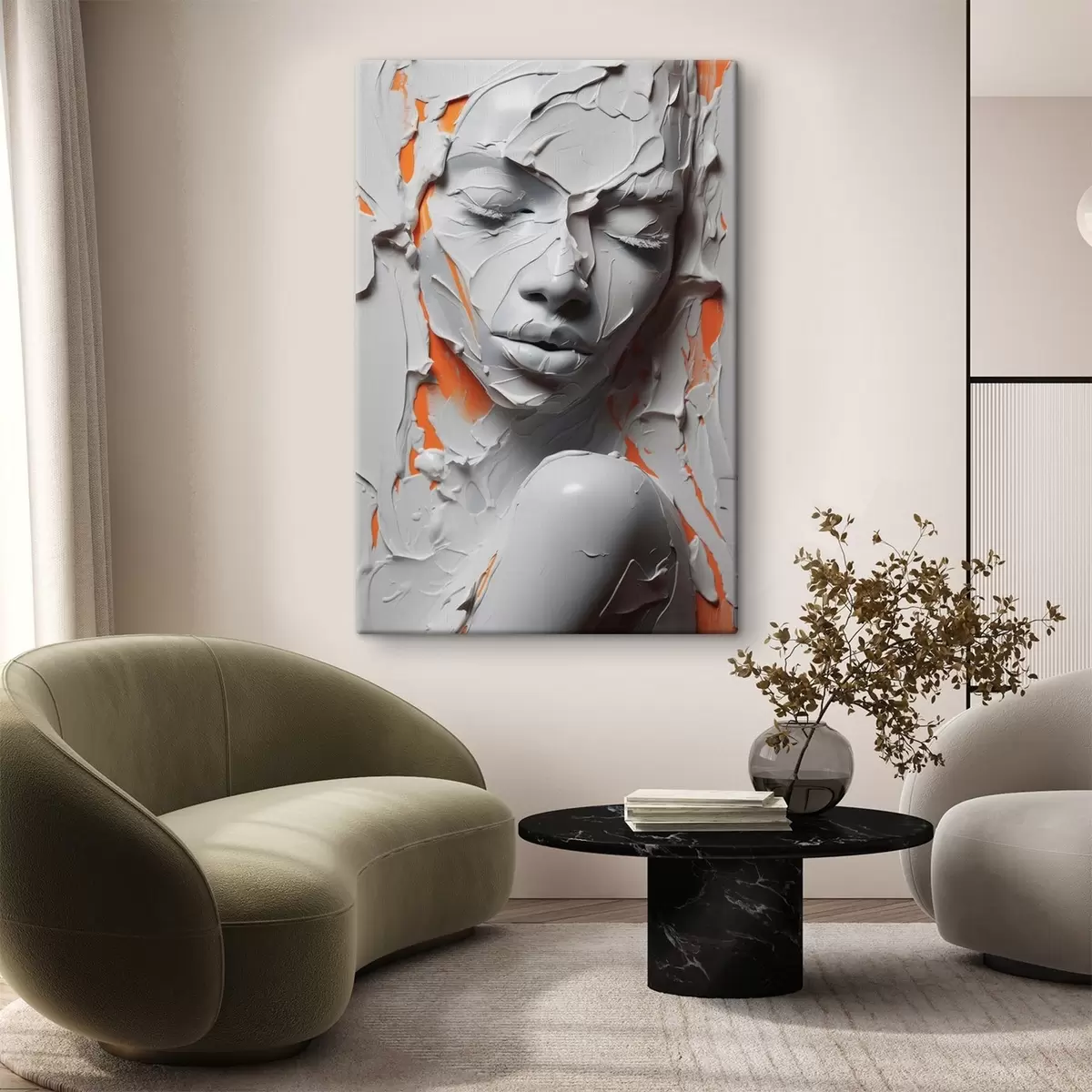 Wandbilder Porträt eines Mädchens in weißer Farbe Nachahmung von Strichen Art. s41657