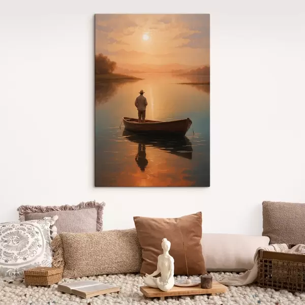 Wandbilder Mann in einem Boot in der Mitte eines Sees Art. s41770