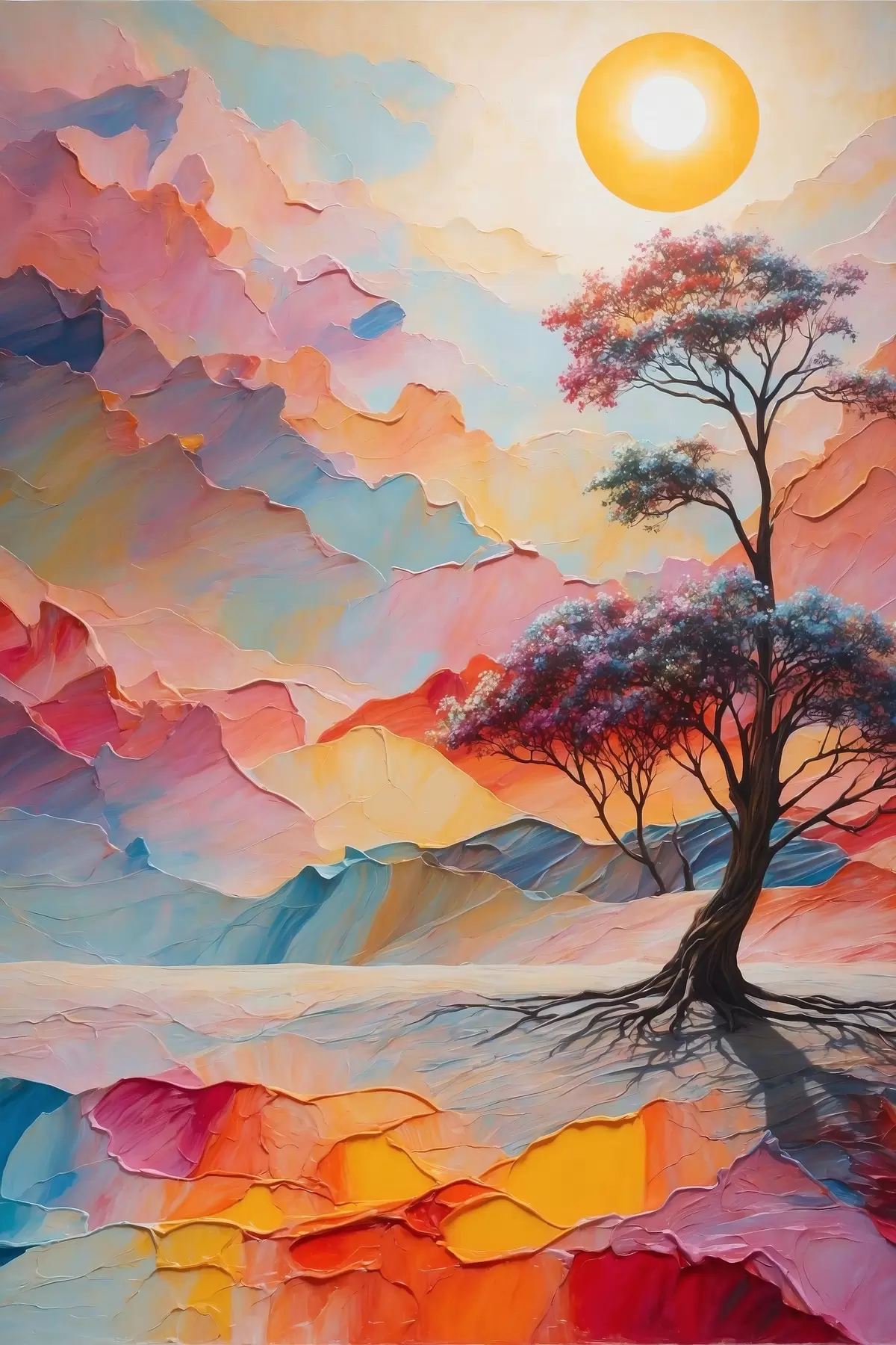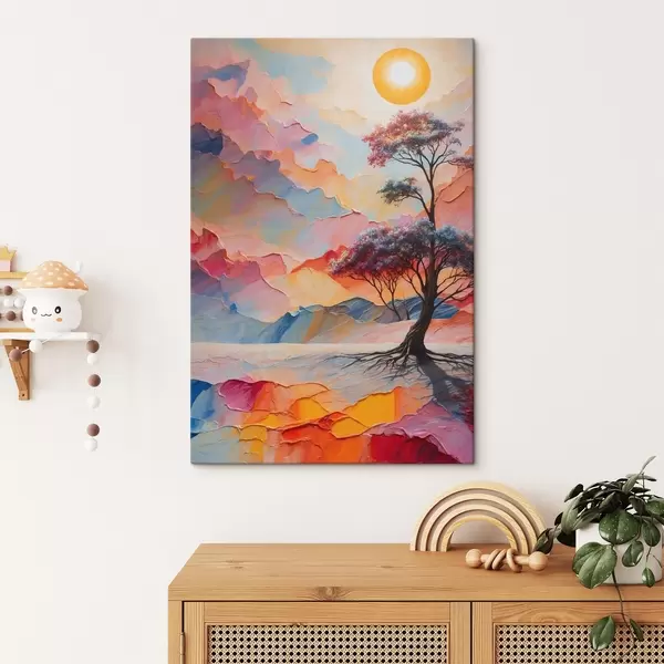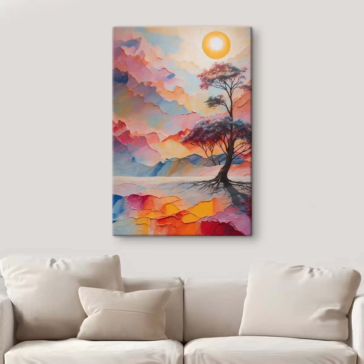 Wandbilder Baum und Sonne auf abstraktem Hintergrund im Acryl-Stil s41771