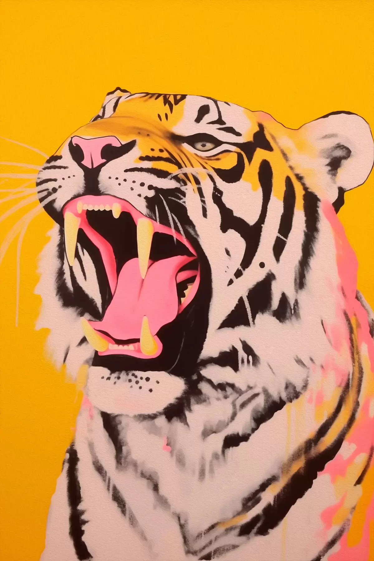 Wandbilder Tiger auf gelbem Hintergrund Art. s41804