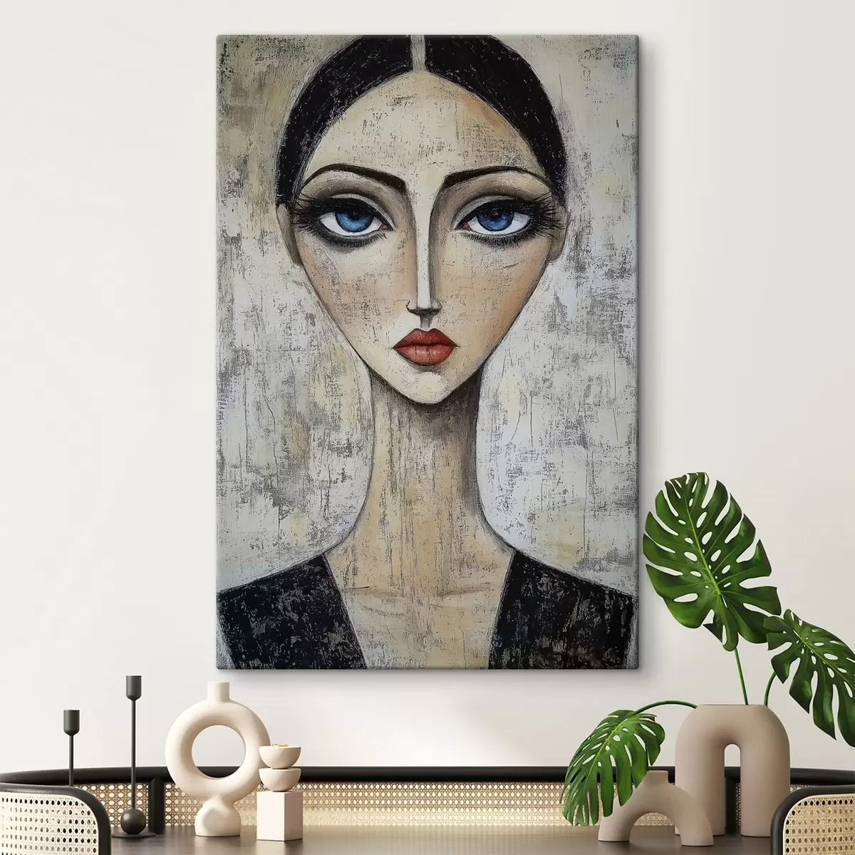 Wandbilder Porträt einer Frau mit ausdrucksvollen Augen in einer stilisierten Technik Art. s41811
