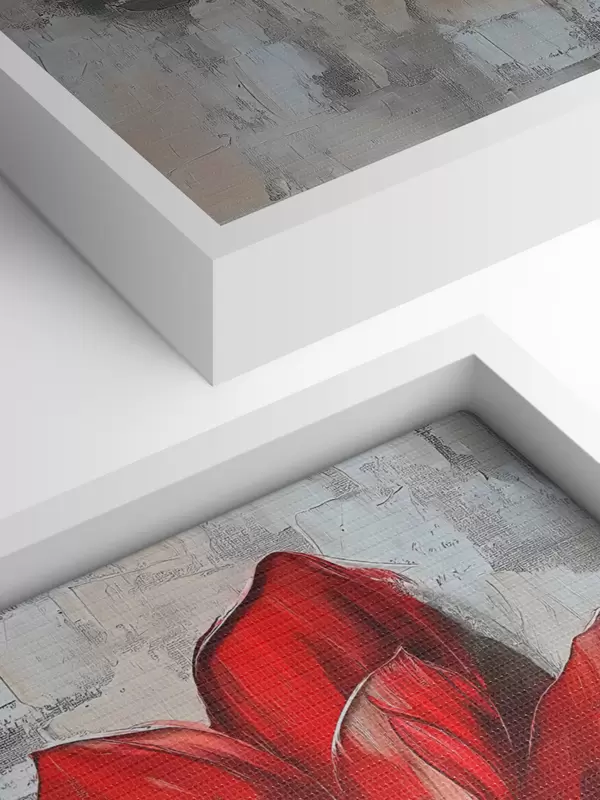 Drei Materialtypen stehen zur Verfügung: Economic Canvas - ein dichtes und haltbares Material für den Digitaldruck, identisch mit Malerleinwand, wasserfeste Oberfläche, realistische Wiedergabe von Details, mittelkörniges Material. Premium Canvas - die Textur ähnelt der einer Malerleinwand (verwobene kleine Fäden). Weiche, detaillierte Wiedergabe des Bildes auf einer matten Oberfläche. Eco-Premium - hochwertiges Gewebe aus 100% Baumwolle. Dank der natürlichen Baumwollfasern ist das Material langlebig und verschleißfest. Hervorragende Farbwiedergabe und Detailtreue.