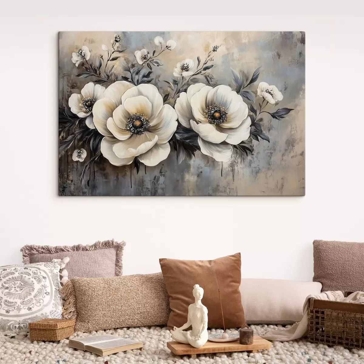 Wandbilder Zweig mit weißen Blumen im Vintage-Stil Art. s41828