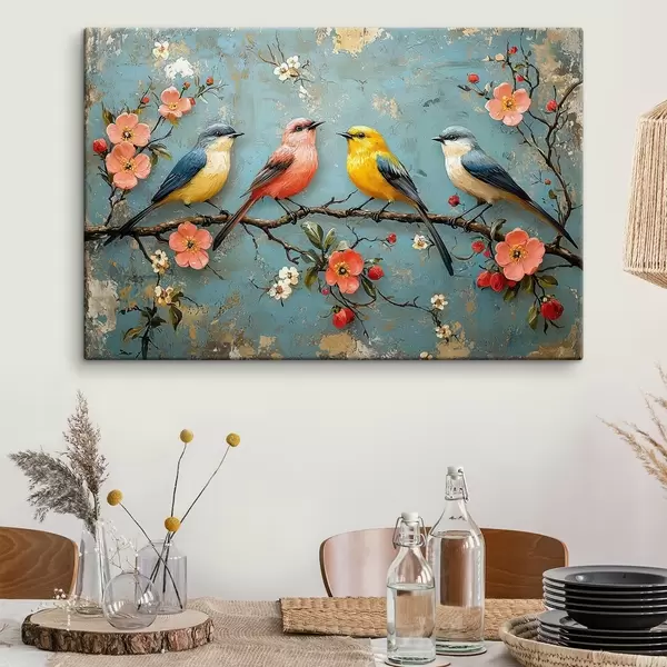 Wandbilder Vögel auf einem Sakura-Zweig im Stil der Ölmalerei Art. s41834