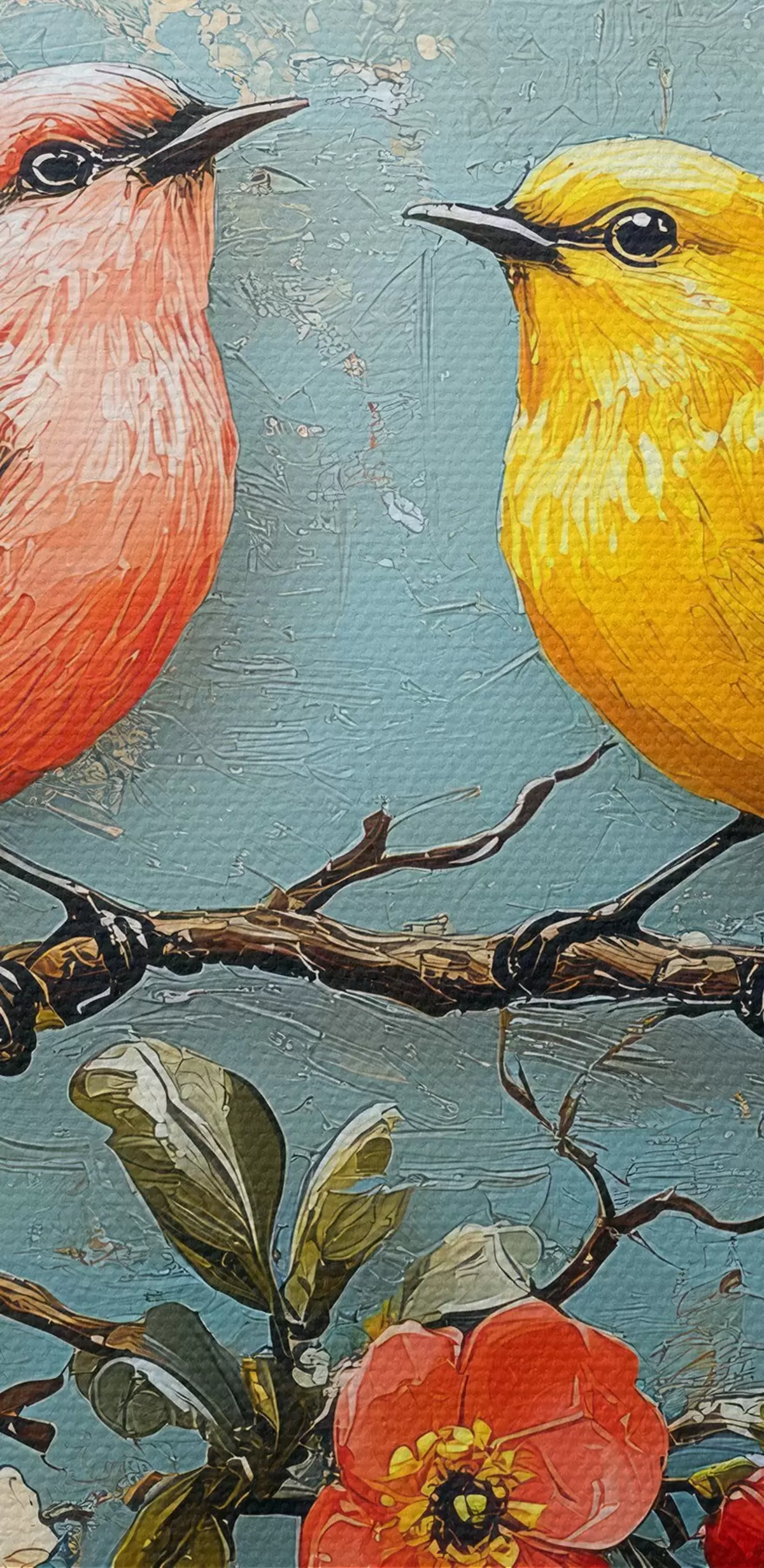 Wandbilder Vögel auf einem Sakura-Zweig im Stil der Ölmalerei Art. s41834