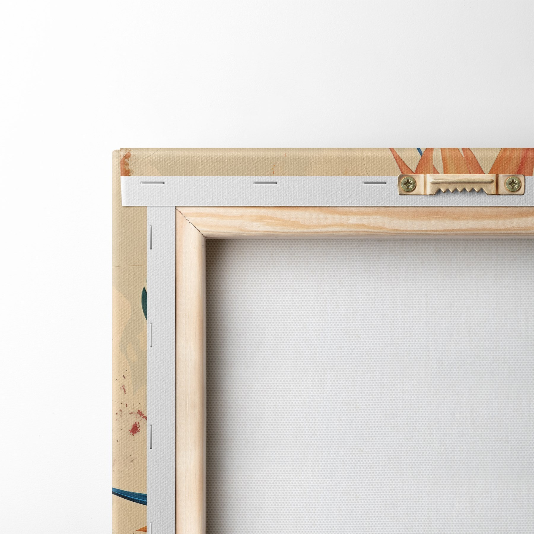 Um die Leinwand auf Keilrahmen zu spannen, ohne das Bild zu beschädigen, verwenden wir ein gespiegeltes Bild.