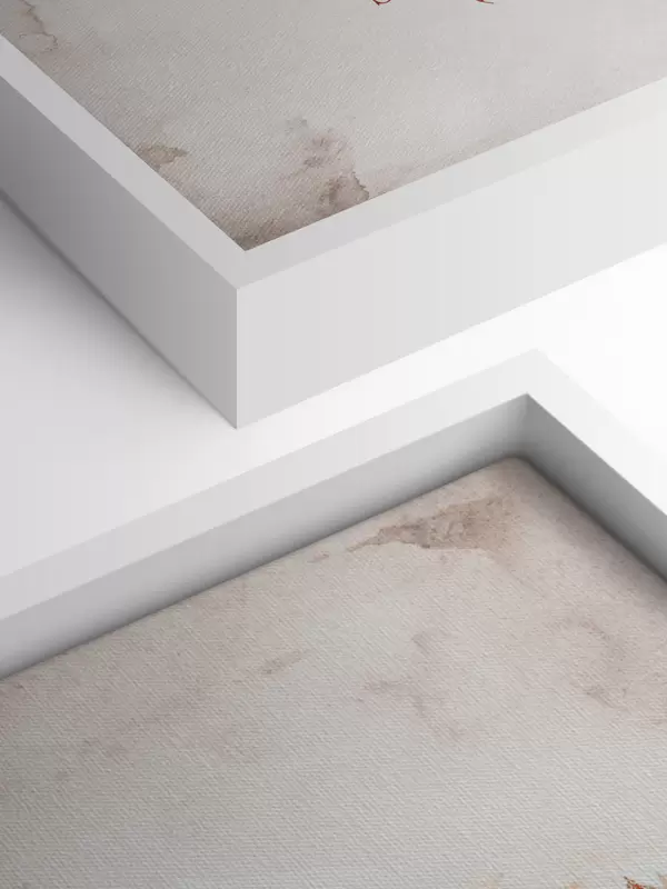 Das Bild kann vorsichtig mit einem trockenen, weichen Tuch oder Schwamm abgewischt werden; es wird nicht empfohlen, feuchte Produkte zu verwenden. Die Verwendung eines feuchten Schwamms ist nur zulässig, wenn das Bild lackiert wurde.