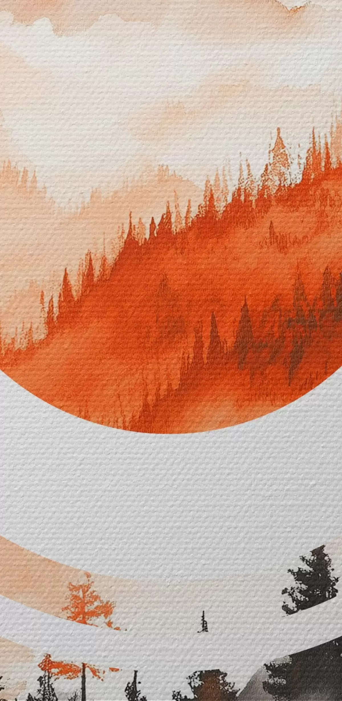 Wandbilder Svadhisthana-Chakra, Orangen-Chakra, Esoterik, Meditation, Buddhismus, Berge im Aquarellstil Art. s41881