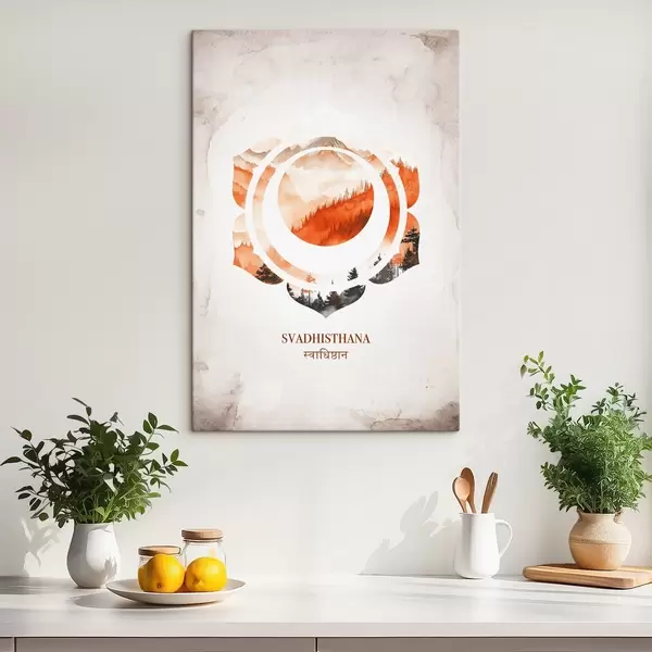 Wandbilder Svadhisthana-Chakra, Orangen-Chakra, Esoterik, Meditation, Buddhismus, Berge im Aquarellstil Art. s41881
