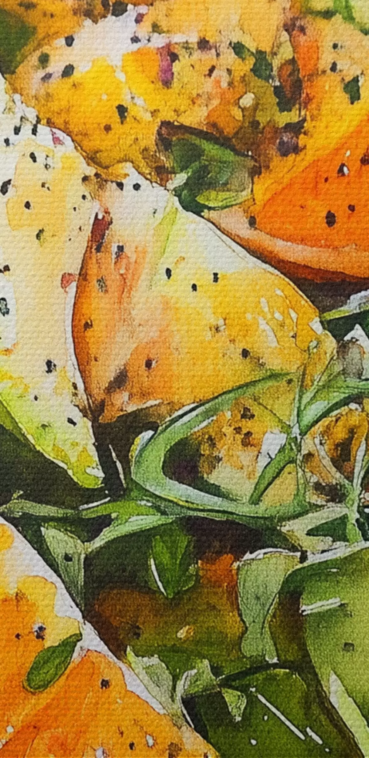 Wandbilder Aquarell-Salat mit Kürbis, Orangen und Avocado s41957
