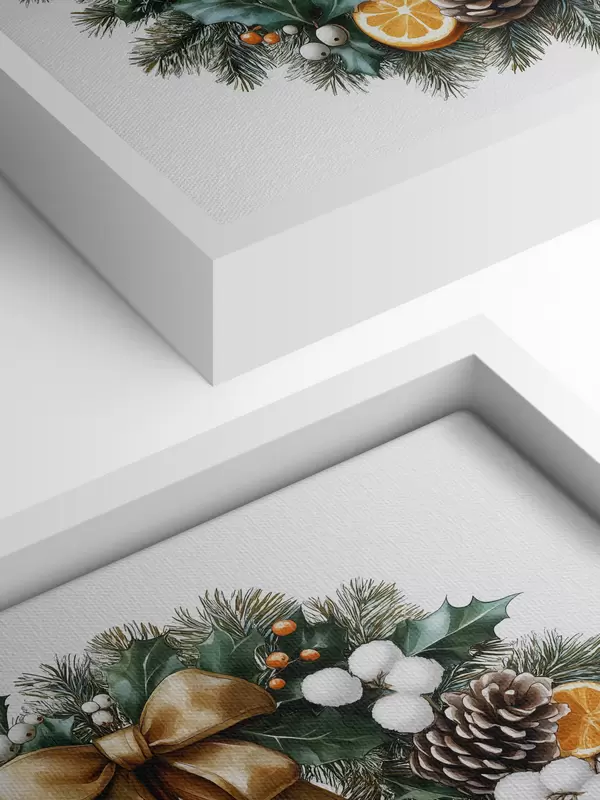 Wandbilder Weihnachtskranz mit Schleife, Baumwolle, Orangen, Beeren und Zapfen Art. s41962