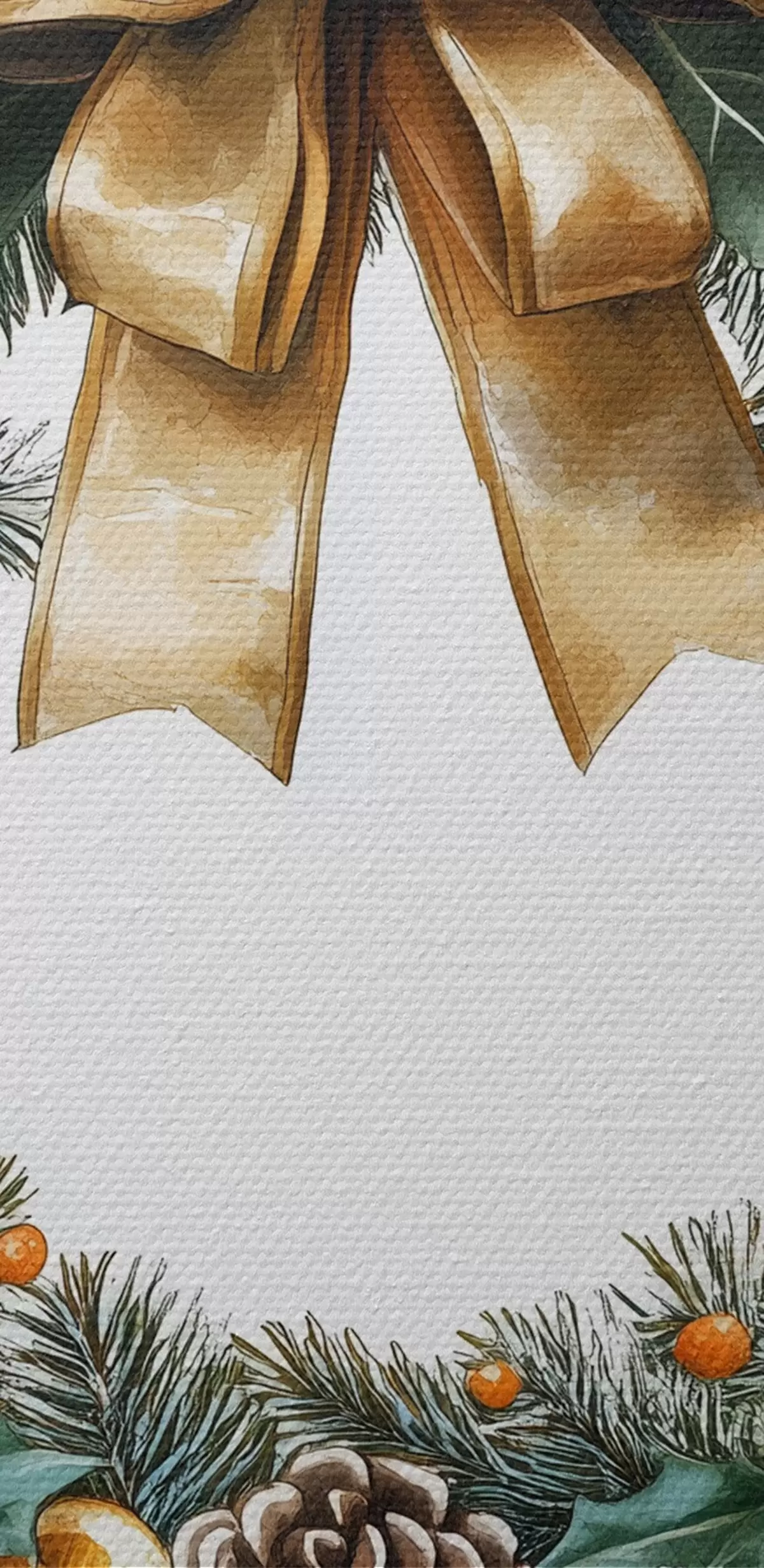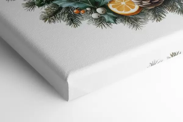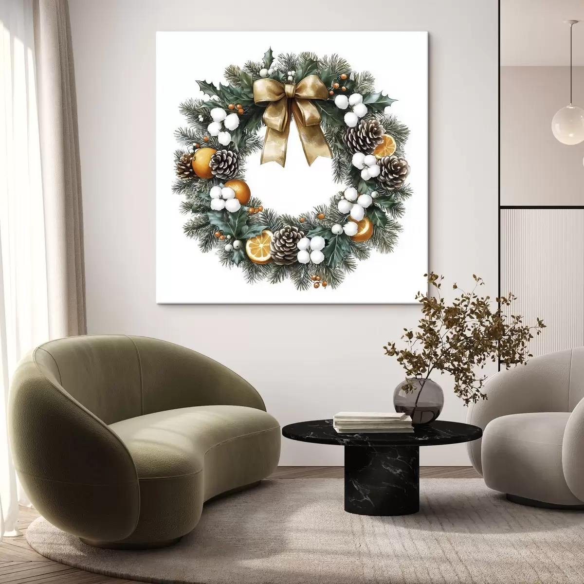 Wandbilder Weihnachtskranz mit Schleife, Baumwolle, Orangen, Beeren und Zapfen Art. s41962