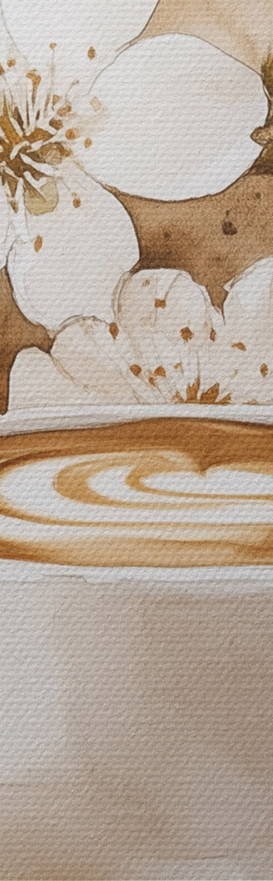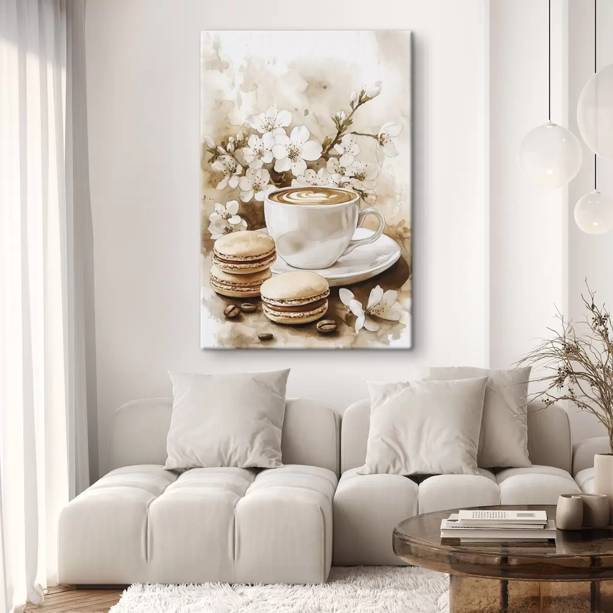 Wandbilder Makronen, Tasse Kaffee, Aquarellstil, Beigetöne, Jasminblüten Art. s41965