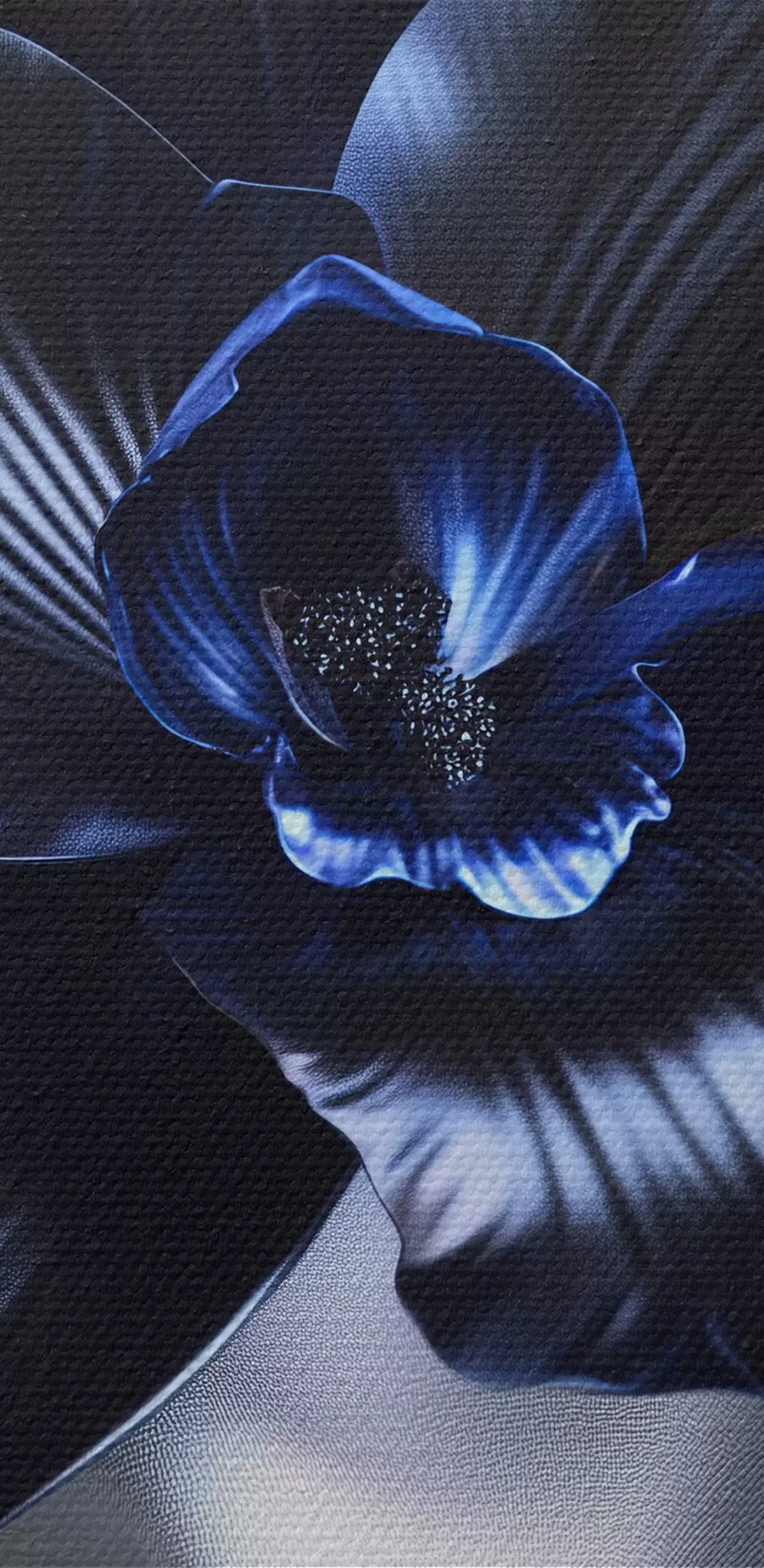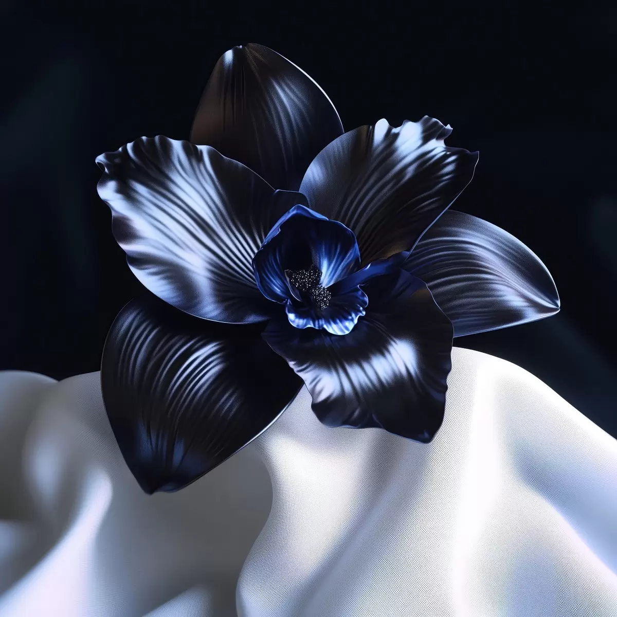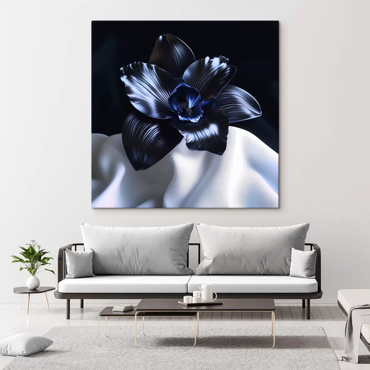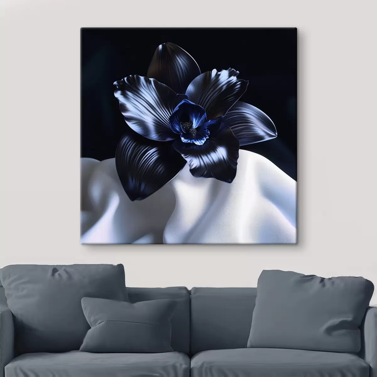 Wandbilder Eine schwarze Orchidee vor einem seidenen Hintergrund s41976