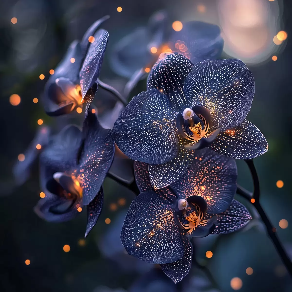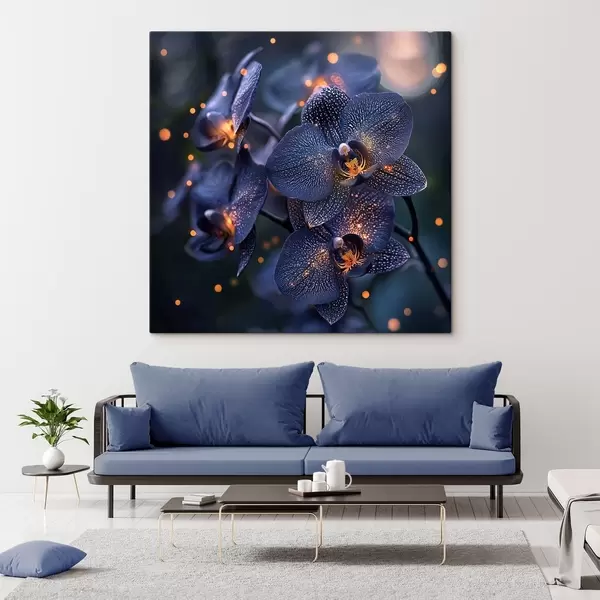 Wandbilder Eine zauberhafte dunkelblaue Orchidee mit gelben Akzenten s41979