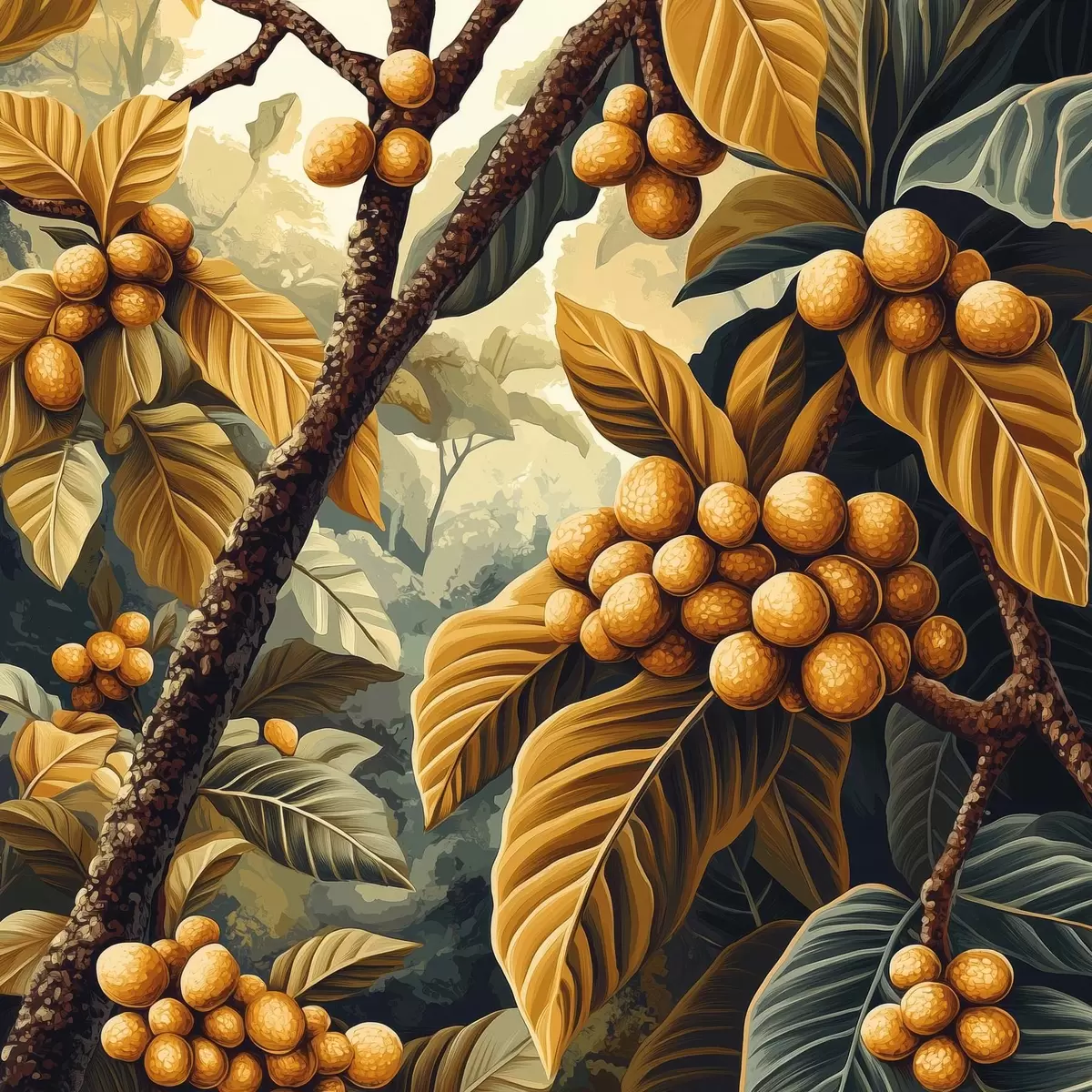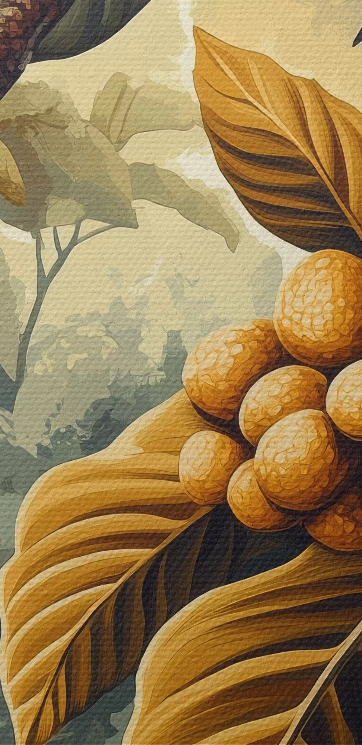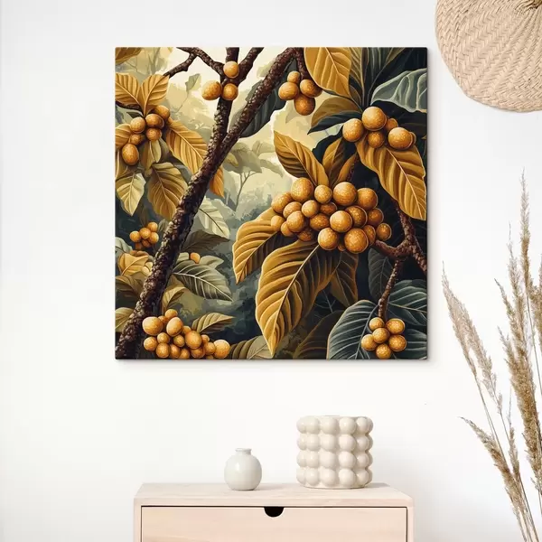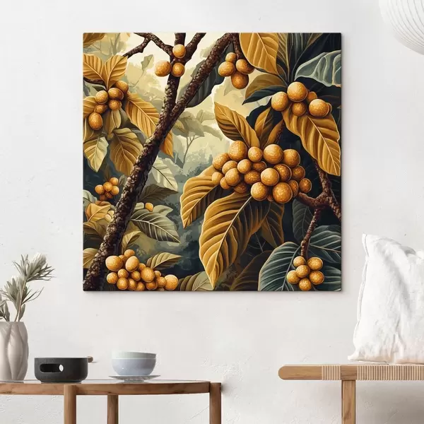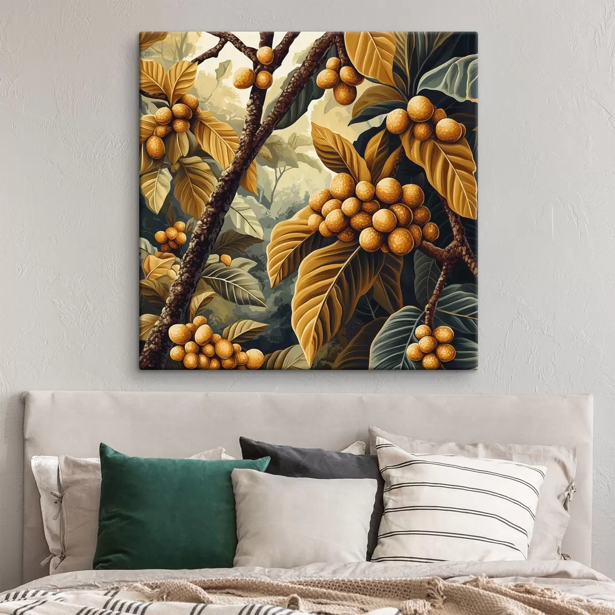 Wandbilder Ein Kaffeebaum mit Früchten und Blättern in Gelbtönen Art. s41981