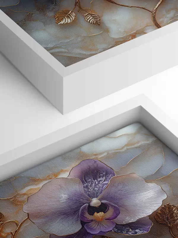 Wandbilder Üppige Orchideen auf einem strukturierten Marmorhintergrund Art. s41984