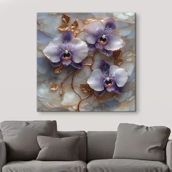 Wandbilder Üppige Orchideen auf einem strukturierten Marmorhintergrund Art. s41984