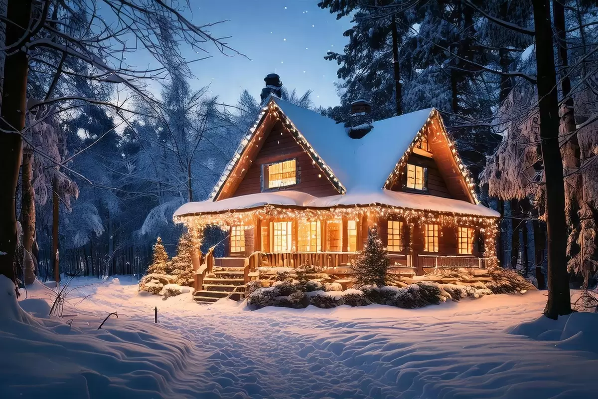 Wandbilder gemütliches Haus im Wald im Winter s41997