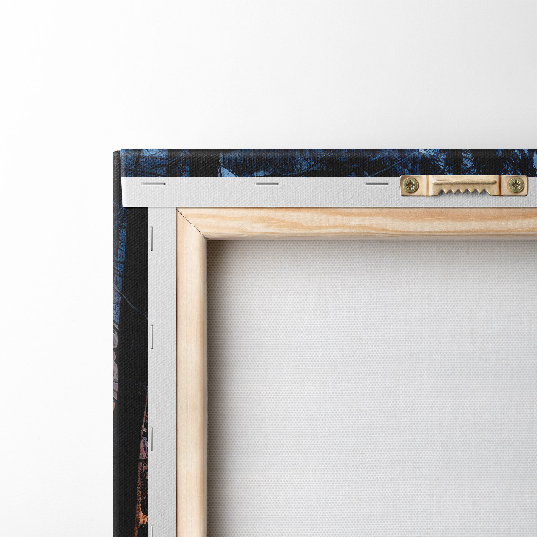 Um die Leinwand auf Keilrahmen zu spannen, ohne das Bild zu beschädigen, verwenden wir ein gespiegeltes Bild.
