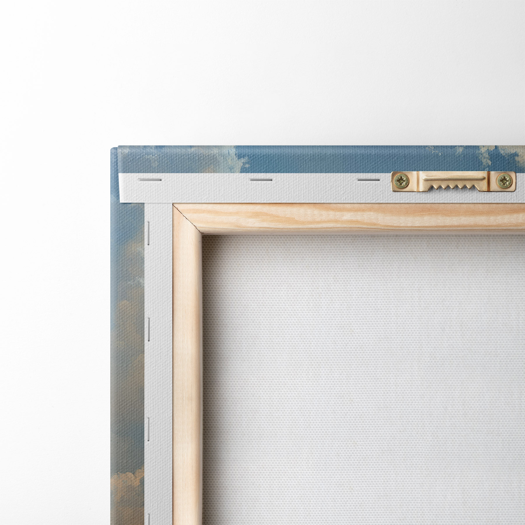 Um die Leinwand auf Keilrahmen zu spannen, ohne das Bild zu beschädigen, verwenden wir ein gespiegeltes Bild.