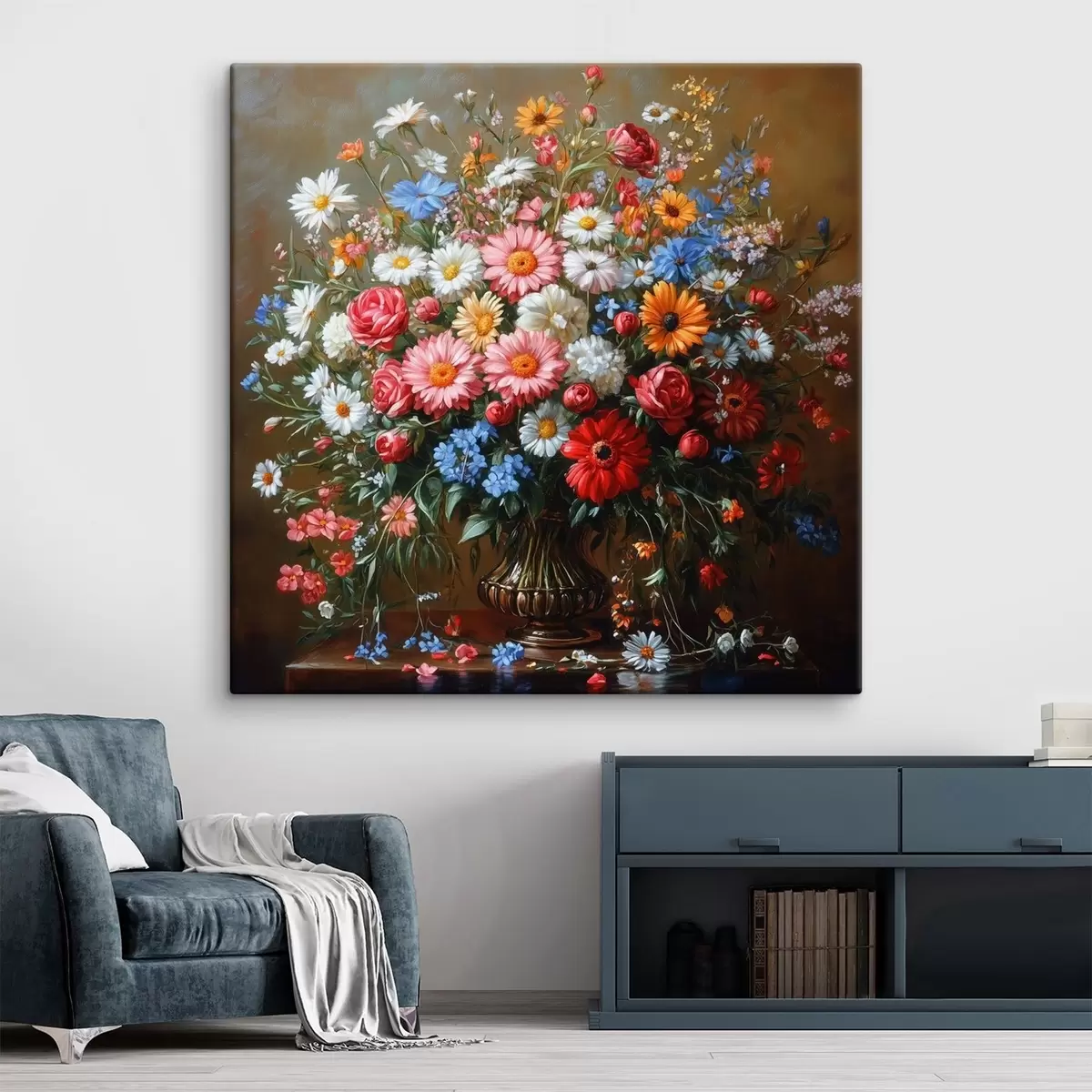 Drei Materialtypen stehen zur Verfügung: Economic Canvas - ein dichtes und haltbares Material für den Digitaldruck, identisch mit Malerleinwand, wasserfeste Oberfläche, realistische Wiedergabe von Details, mittelkörniges Material. Premium Canvas - die Textur ähnelt der einer Malerleinwand (verwobene kleine Fäden). Weiche, detaillierte Wiedergabe des Bildes auf einer matten Oberfläche. Eco-Premium - hochwertiges Gewebe aus 100% Baumwolle. Dank der natürlichen Baumwollfasern ist das Material langlebig und verschleißfest. Hervorragende Farbwiedergabe und Detailtreue.