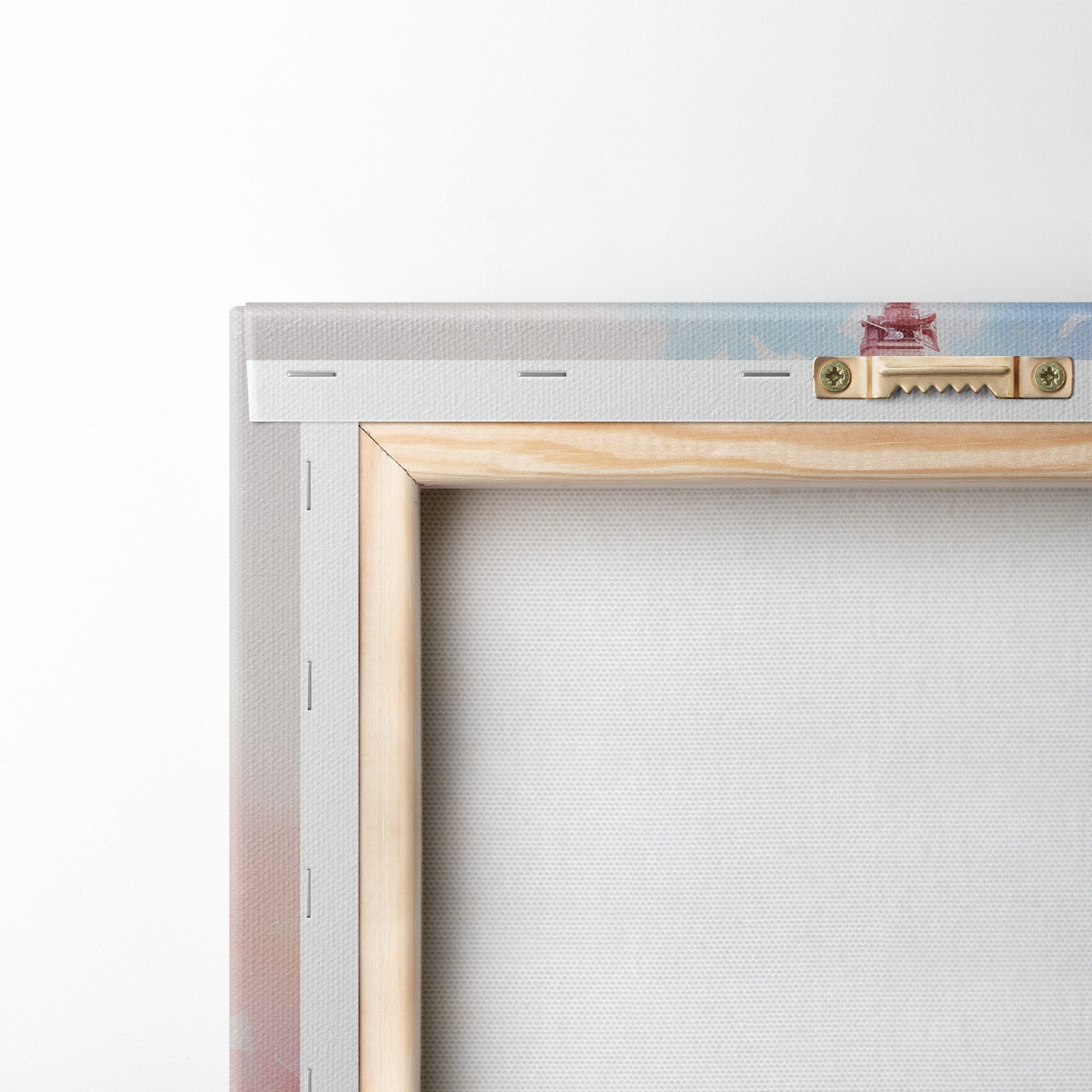 Um die Leinwand auf Keilrahmen zu spannen, ohne das Bild zu beschädigen, verwenden wir ein gespiegeltes Bild.