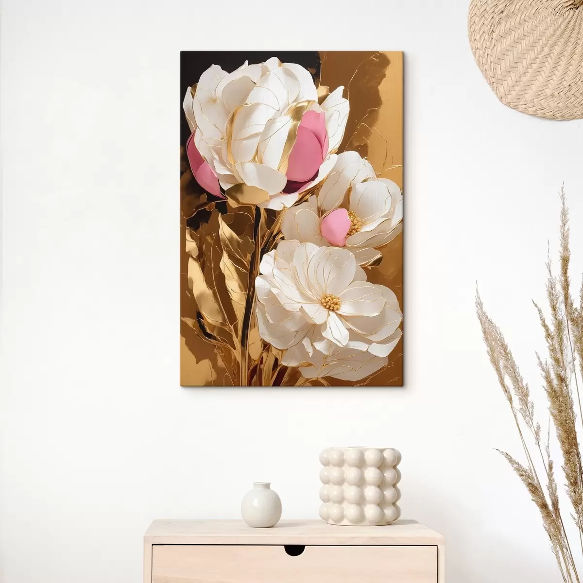 Drei Materialtypen stehen zur Verfügung: Economic Canvas - ein dichtes und haltbares Material für den Digitaldruck, identisch mit Malerleinwand, wasserfeste Oberfläche, realistische Wiedergabe von Details, mittelkörniges Material. Premium Canvas - die Textur ähnelt der einer Malerleinwand (verwobene kleine Fäden). Weiche, detaillierte Wiedergabe des Bildes auf einer matten Oberfläche. Eco-Premium - hochwertiges Gewebe aus 100% Baumwolle. Dank der natürlichen Baumwollfasern ist das Material langlebig und verschleißfest. Hervorragende Farbwiedergabe und Detailtreue.