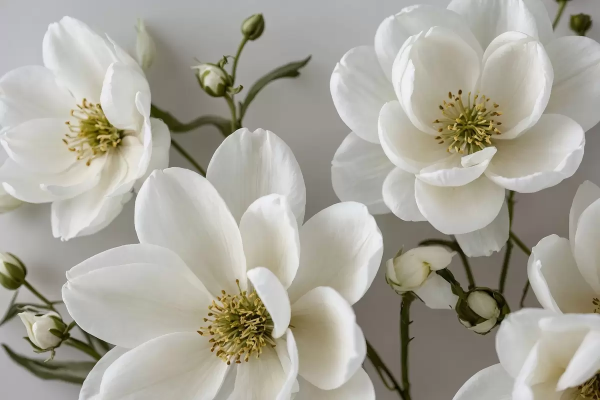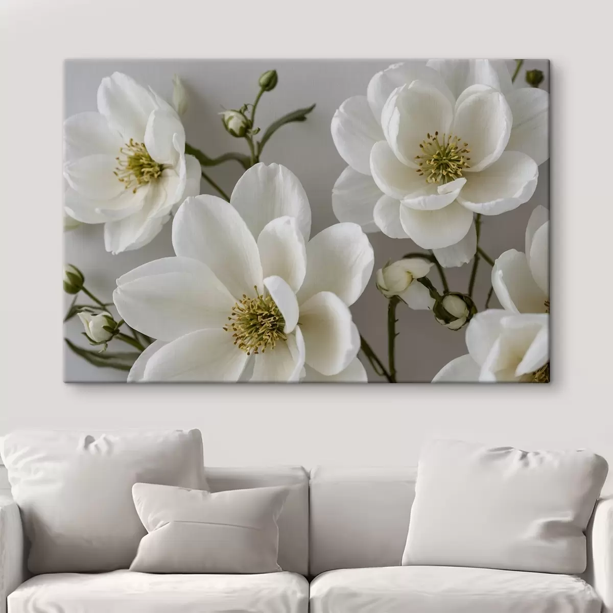 Wandbilder Weiße Blumen und Stängel auf hellem Hintergrund Art. s42097