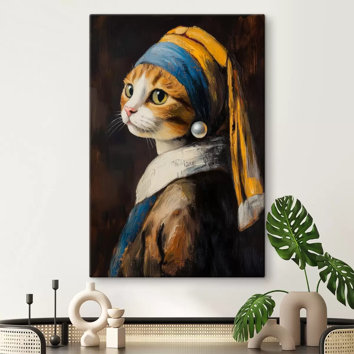 Wandbilder Eine Katze mit einem Perlenohrring Art. s42107